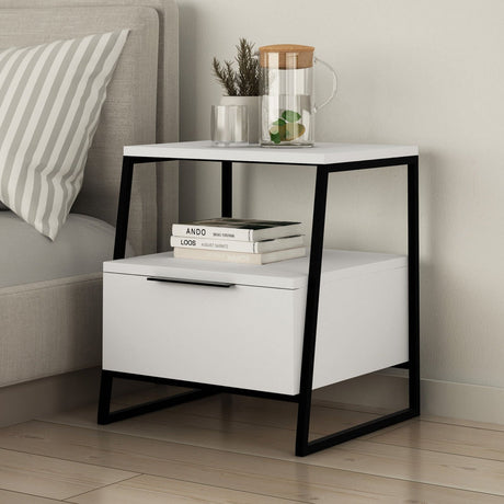 CHF 172.00Eenheid prijs /Niet beschikbaarNachtkastje Pal Wit Zwart Melamine 45x50x41 cm
