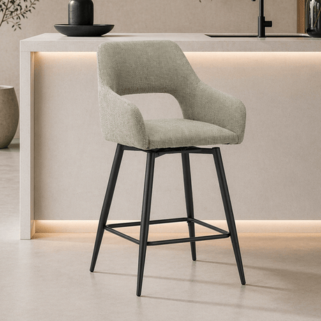 Draaibare Barkruk Groen Stof Skye - Zithoogte 67 cm - Met Armleuningen