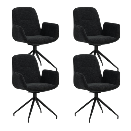 CHF 203.00Eenheid prijs /Niet beschikbaarSet van 4 Draaibare Eetkamerstoelen Nela Chenille Zwart - Met Armleuningen