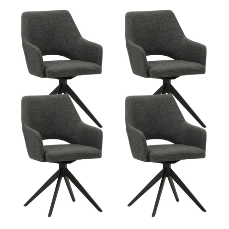 CHF 811.00Eenheid prijs /Niet beschikbaarSet van 4 Draaibare Eetkamerstoelen Sid Antraciet Stof - Met Armleuningen