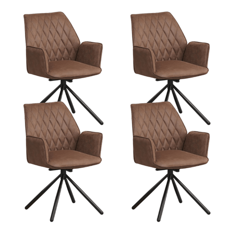 CHF 811.00Eenheid prijs /Niet beschikbaarSet van 4 Draaibare Eetkamerstoelen Novan Industrieel Bruin Stof – 180° Draaibaar