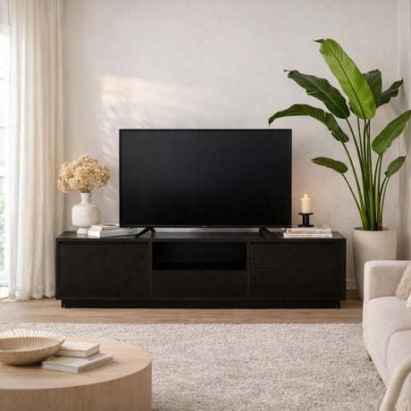 CHF 290.00Eenheid prijs /Niet beschikbaarTV Meubel Zwart Melamine - drie kastjes - 160x42x29,5 cm - Flare