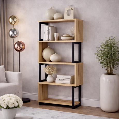 CHF 231.00Eenheid prijs /Niet beschikbaarIndustriële Boekenkast Ely Eiken Melamine - Zwart Frame - 180x90 cm