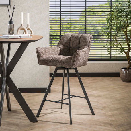 Set van 2 Barkrukken Lino Chenille Stof Rich Taupe Draaibaar