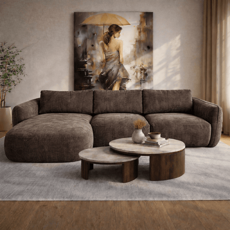 CHF 1,998.00Eenheid prijs /Niet beschikbaarModulaire hoekbank met losse hocker donker bruin linnen stof Fora