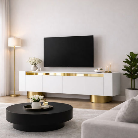 CHF 398.00Eenheid prijs /Niet beschikbaarTV Meubel Wit Bohem 180x50x30 - Gouden Frame