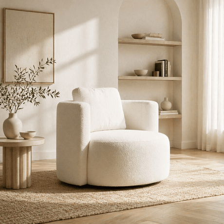 CHF 1,241.00Eenheid prijs /Niet beschikbaarRonde fauteuil crème bouclé Fern