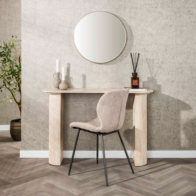 Gebruiksgemak en onderhoud zijn belangrijk: het keramische tafelblad is kras- en vochtbestendig en eenvoudig schoon te houden. Plaats een spiegel en een paar accessoires voor een complete stylingoplossing in huis.