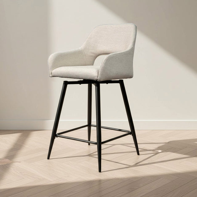 Draaibare Barkruk Beige Stof Skye - Zithoogte 67 cm - Met Armleuningen