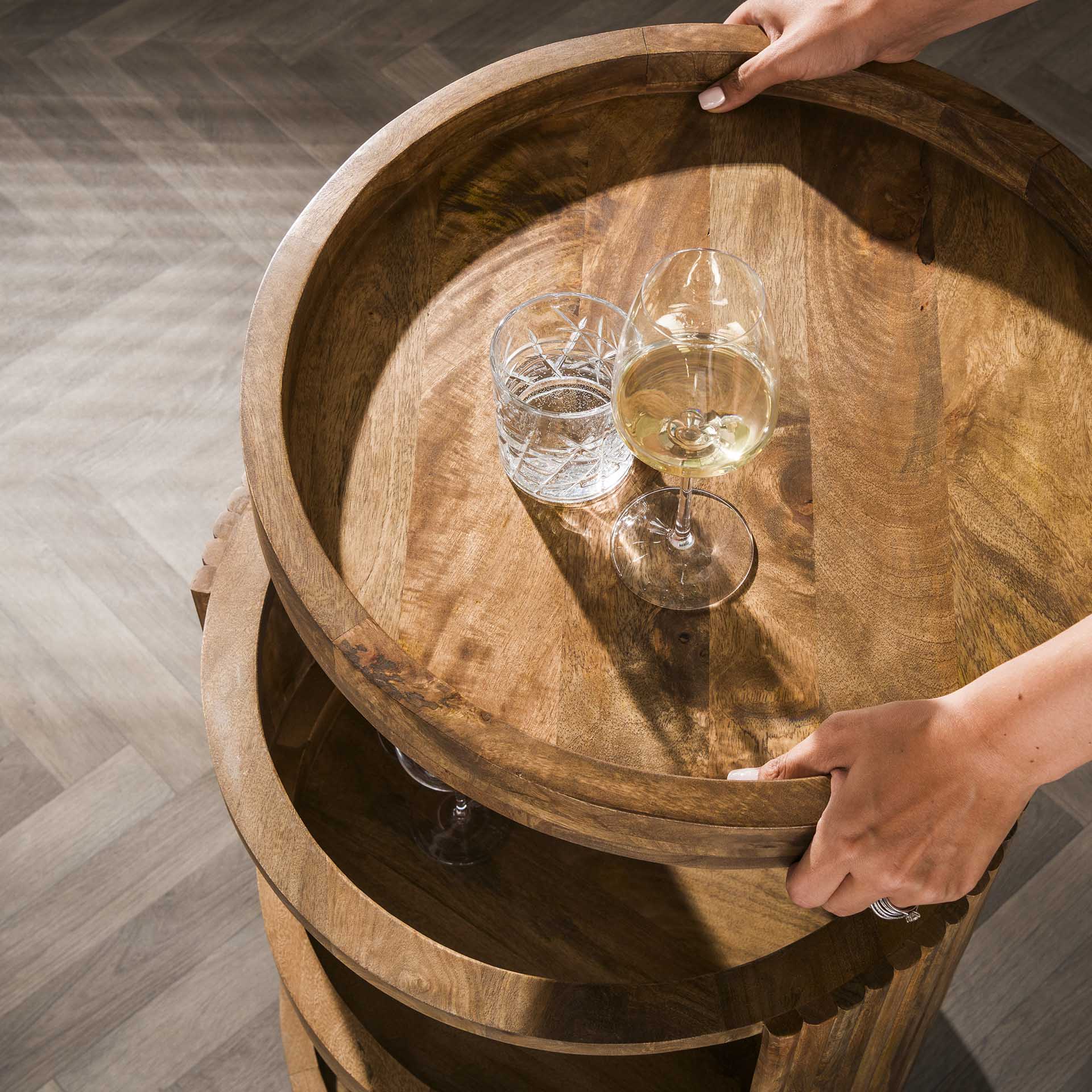 Bartrolley met wielen Lio mangohout zandkleur