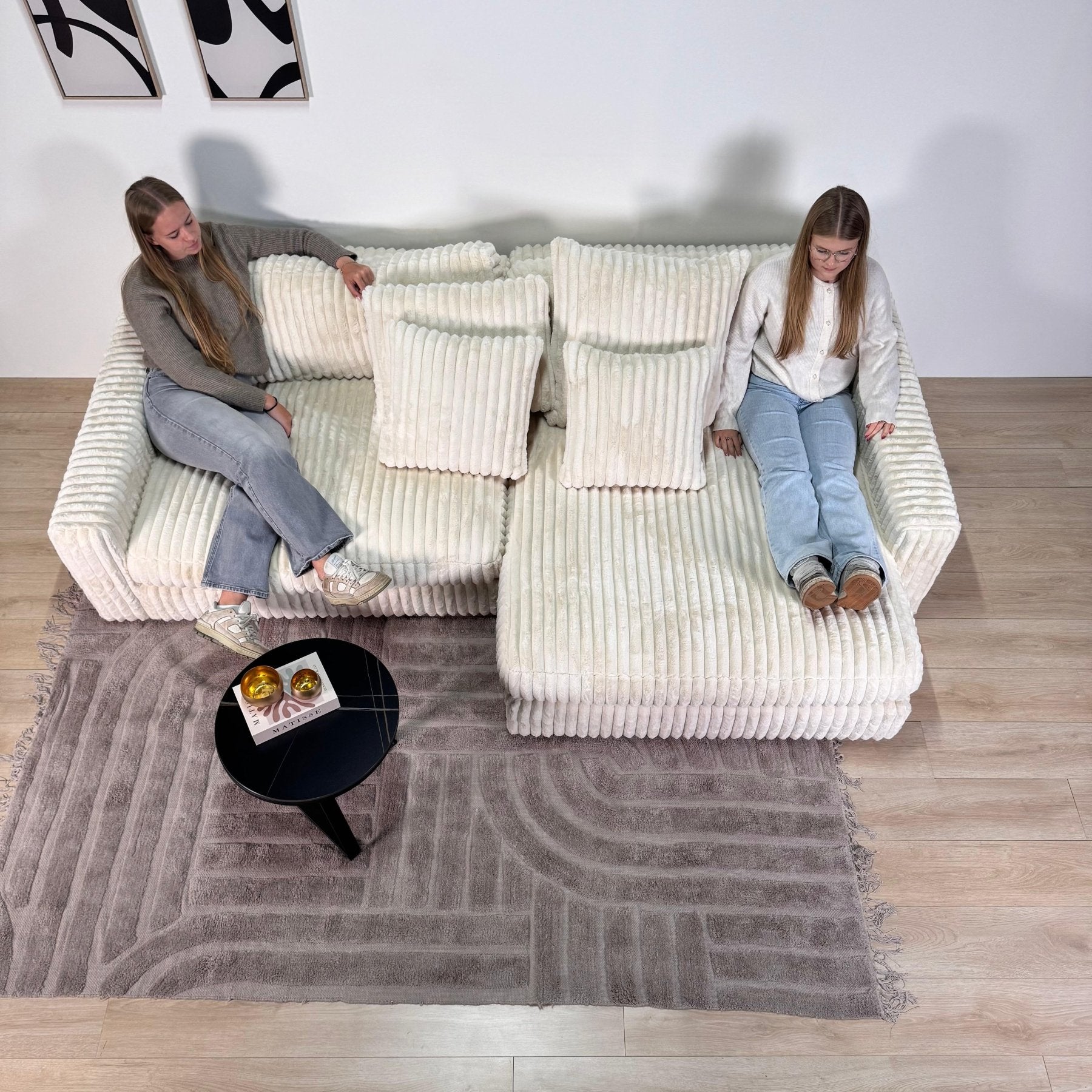 De bank is bekleed met een hele brede ribstof in een zachte, moderne Scandinavische stijl. De lichte beige kleur geeft een frisse uitstraling aan elke ruimte, maar houd er rekening mee dat deze kleur wat meer vlekgevoelig kan zijn. Daarom adviseren wij om de iProteqt vlekken verzekering kit erbij te kopen.