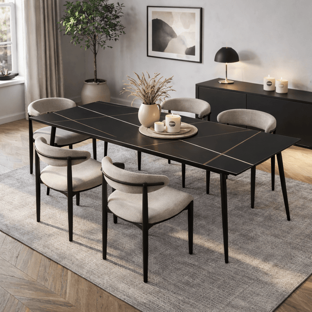 Eettafel Sintered Stone Marmerlook Zwart - Jules
