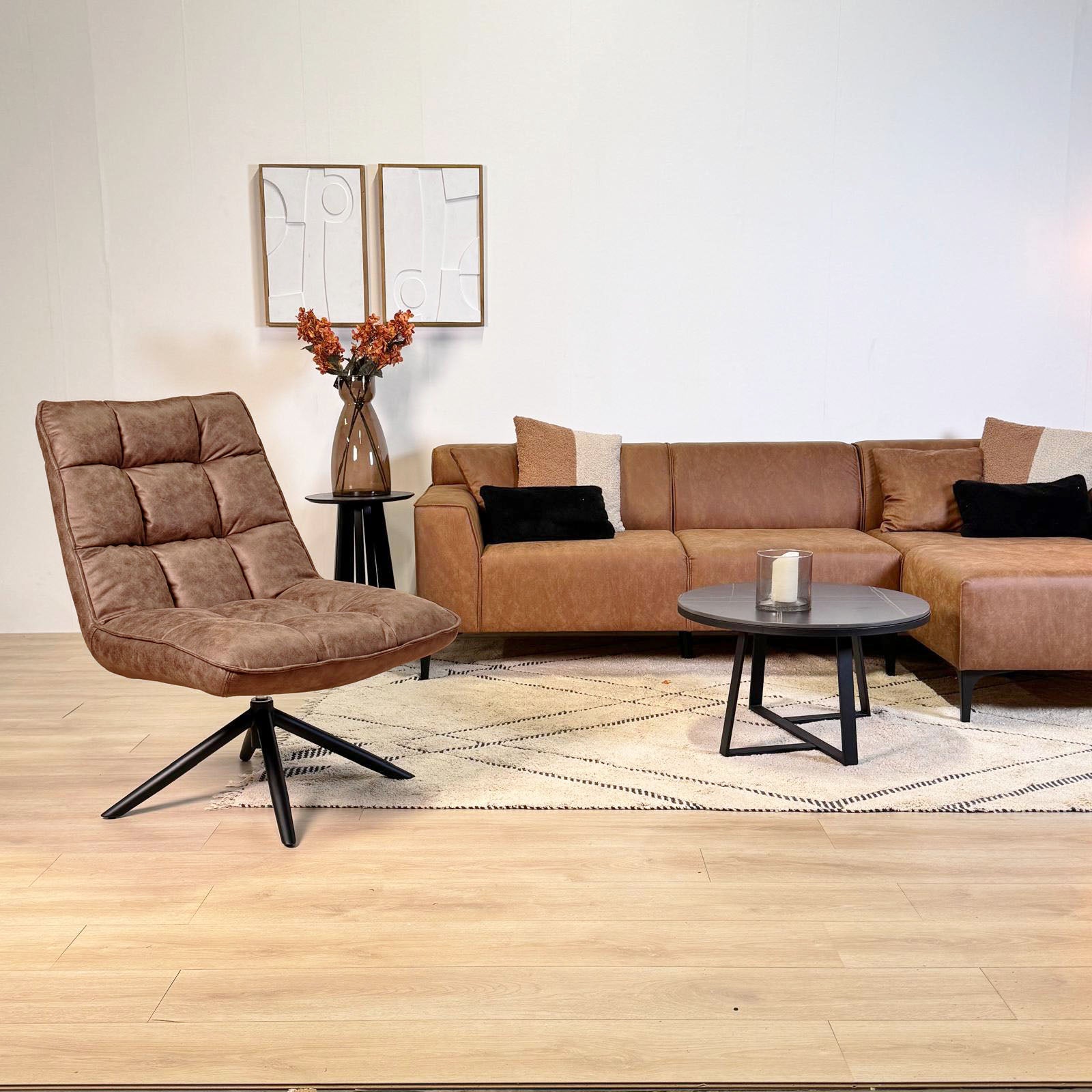 Draaifauteuil Yuki Cognac Eco-leer 360° Draaibaar