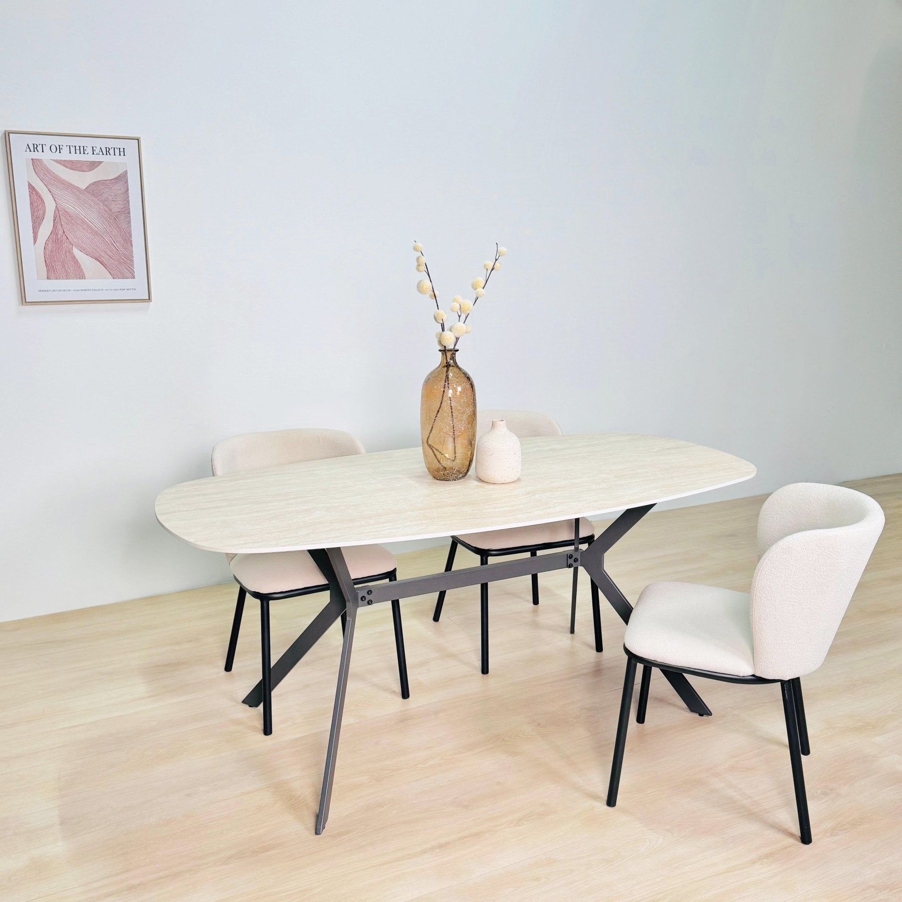 Eettafel Vesta Deens Ovaal Keramiek Travertinlook 180 cm
