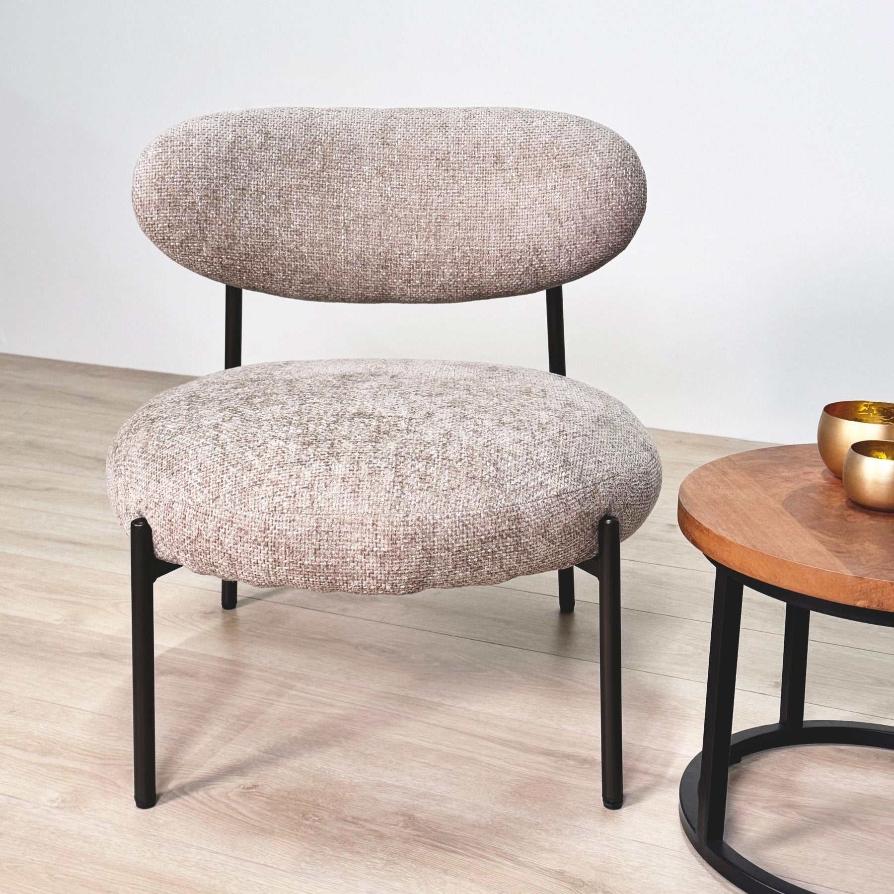 Maak kennis met fauteuil Nova Rond, een stijlvolle blikvanger met zachte, zandkleurige stoffering. De rond gevormde zitting en rug bieden een heerlijk comfortabele zit, terwijl het compacte formaat moeiteloos in kleinere woonkamers, slaapkamers of leeshoeken past. De neutrale beige tint combineert eenvoudig met uiteenlopende interieurs; van modern tot Scandinavisch. Dankzij de duurzame geweven stof is Nova Rond geschikt voor dagelijks gebruik en voor alle seizoenen.