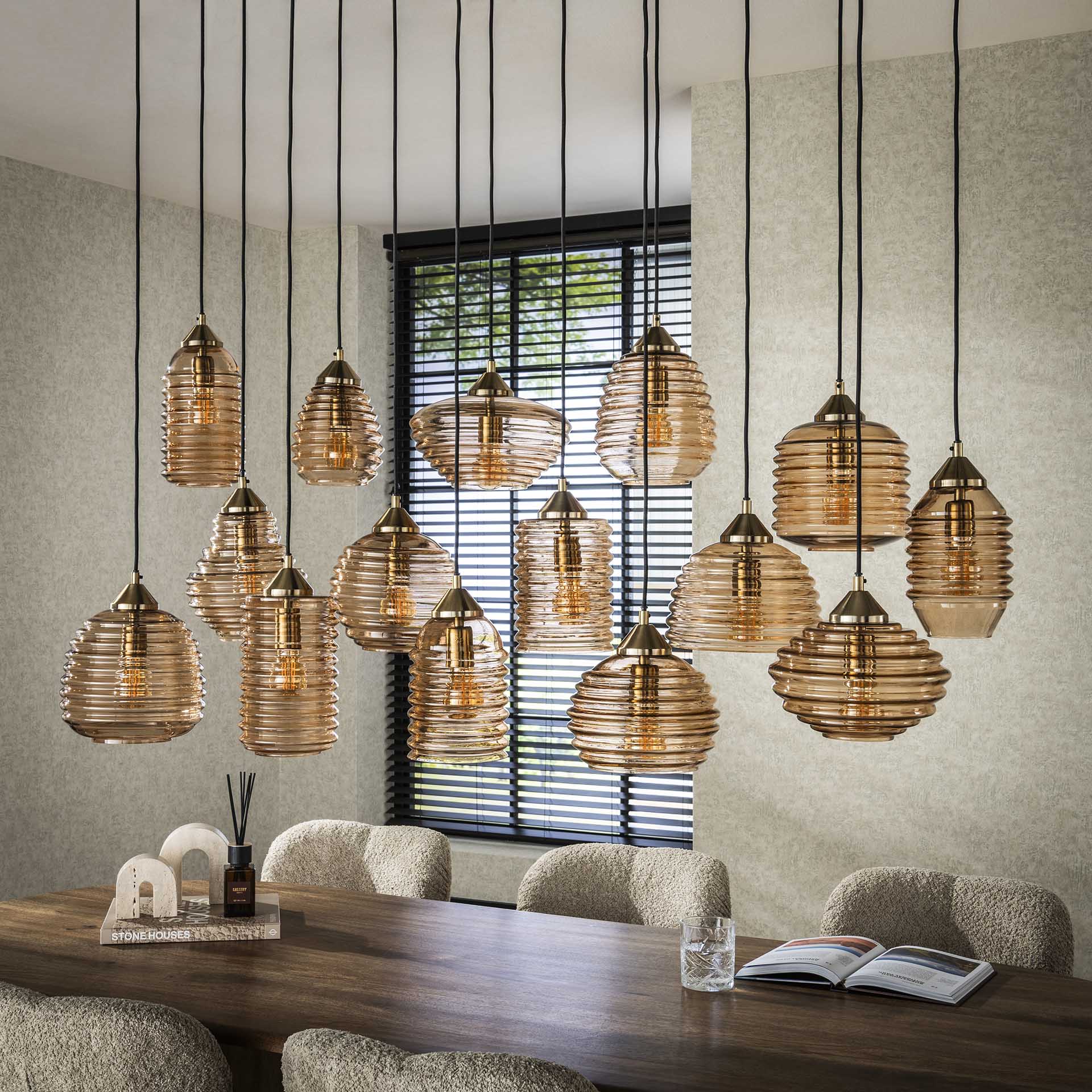 Hanglamp Mali 15-lichts geribbeld glas amberkleurig