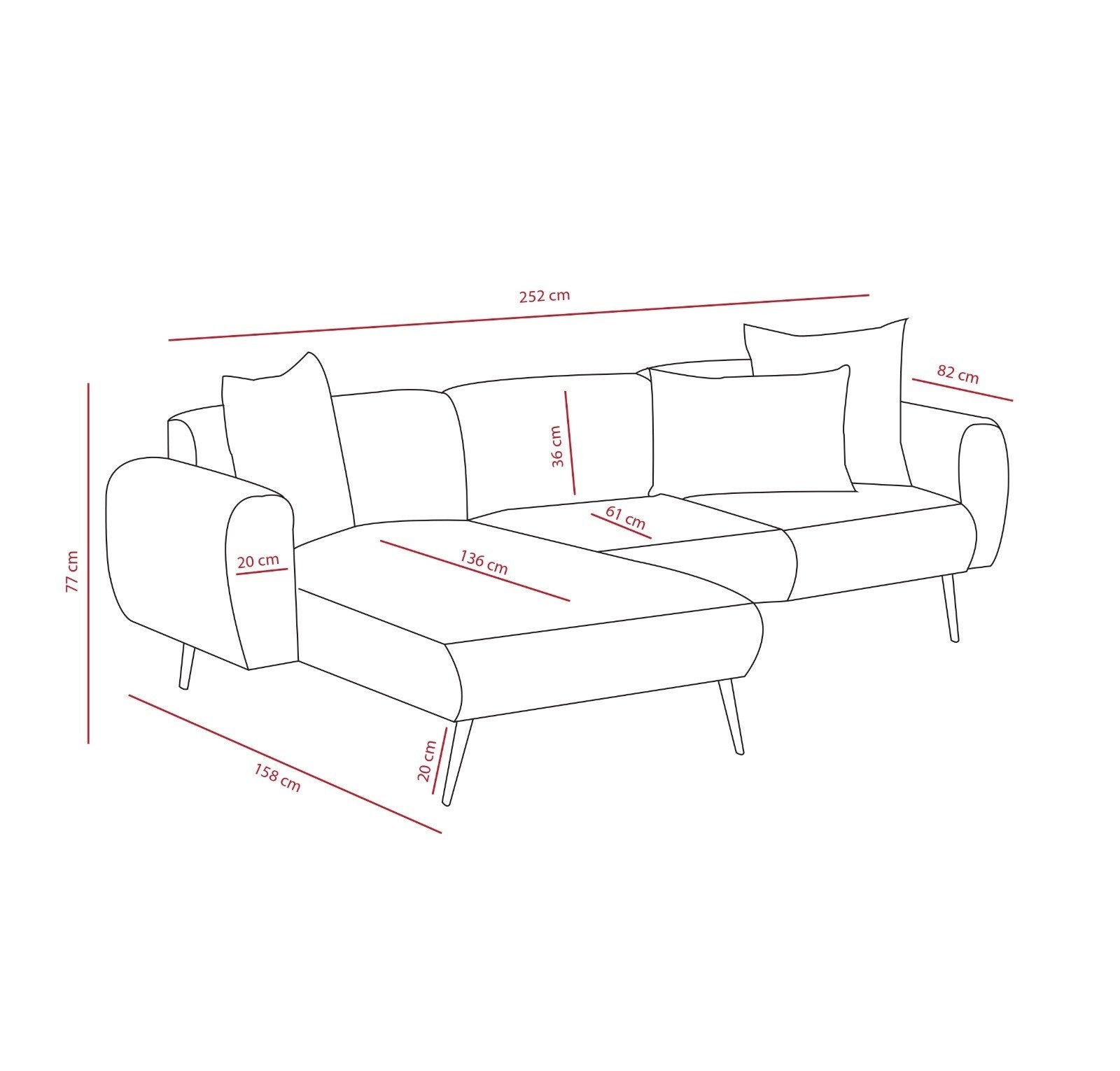• Breedte: 252 cm