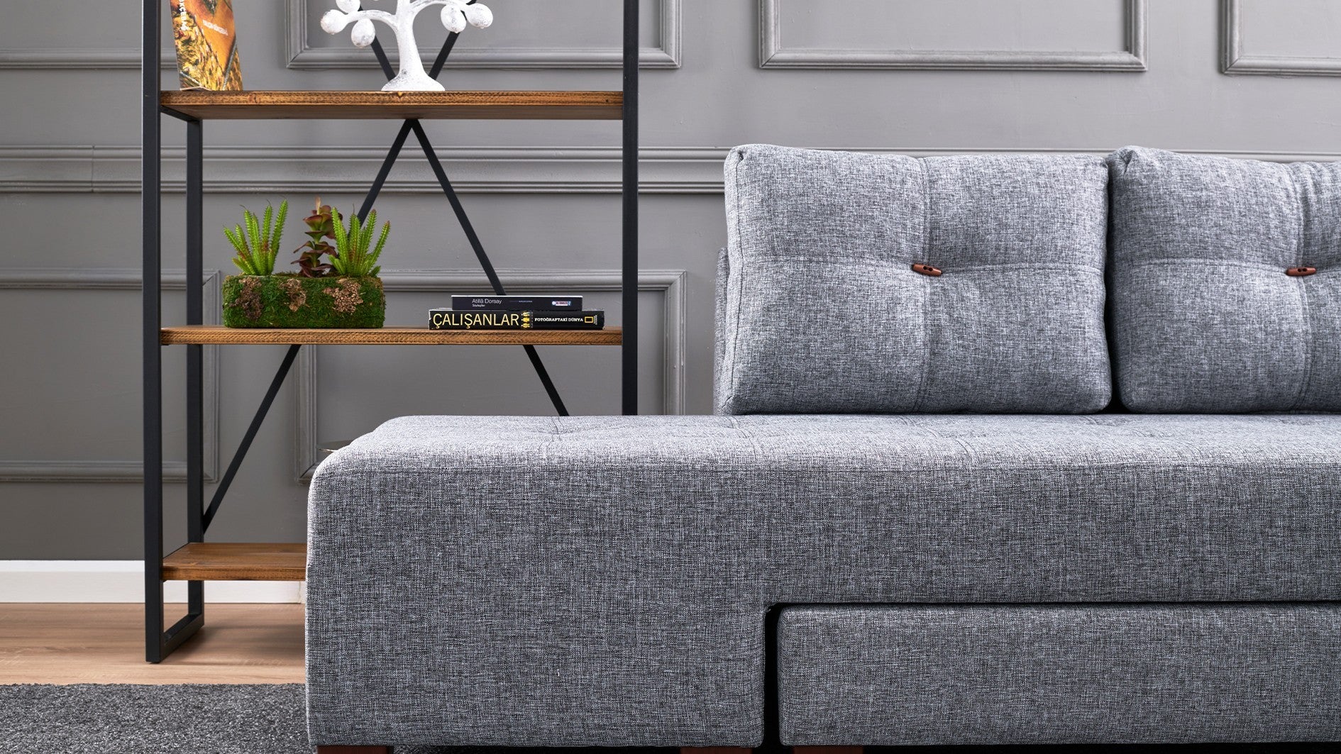 Met zijn strakke en moderne ontwerp zal onze hoekslaapbank de stijl van je woonkamer moeiteloos opwaarderen. De effen grijze kleur voegt een vleugje raffinement toe, terwijl de strakke lijnen en eigentijdse vorm het een opvallend stuk maken in elke ruimte.
