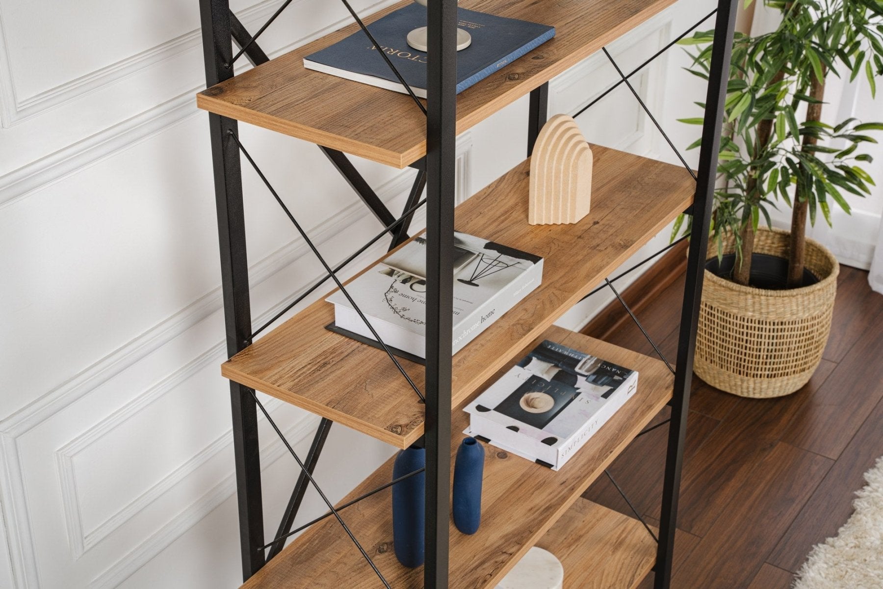 Beschrijving en specificaties van Industriële Boekenkast Ely Atlantisch Dennenhout Melamine - Zwart Frame - 180x90 cm