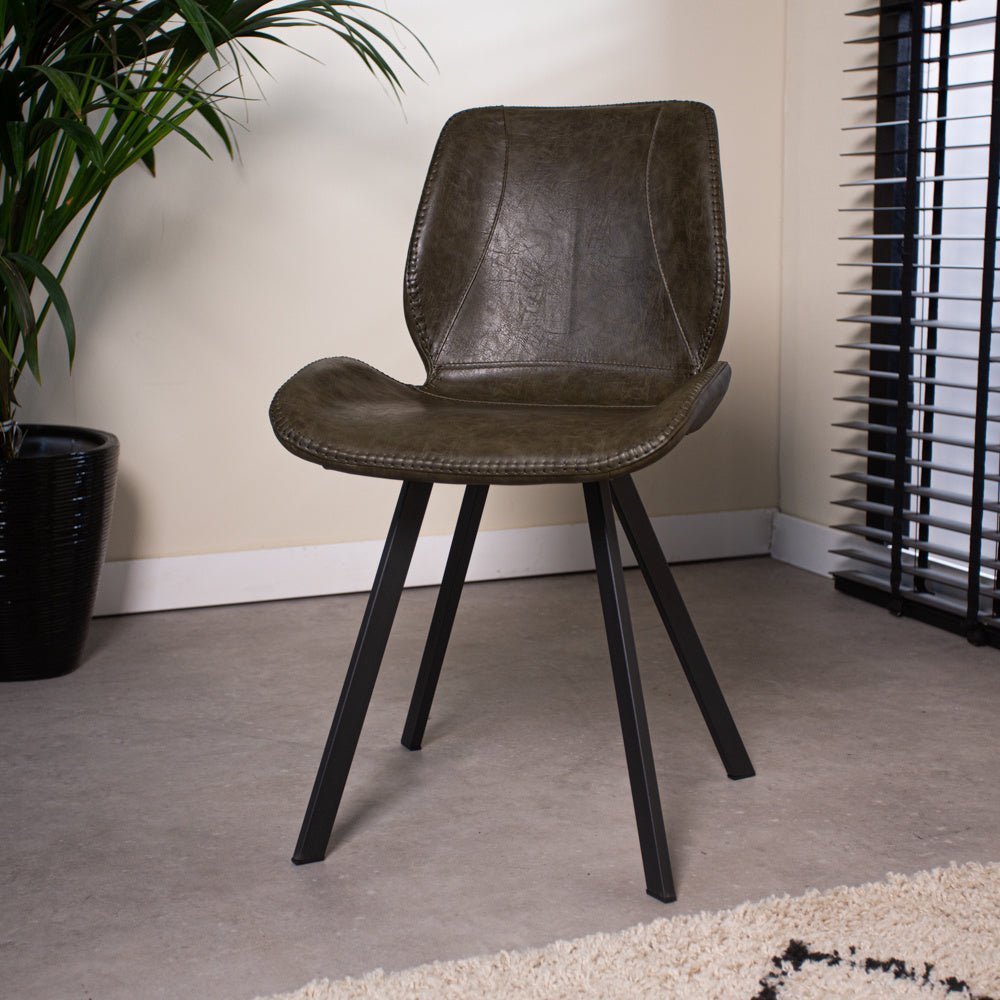 De industriële eetkamerstoel Barry groen is de perfecte toevoeging aan een stoer interieur. Met zijn stoere vintage zitting en zwart gepoedercoat frame is het een onderscheidende stoel. Gemakkelijk te combineren met onze industriële meubels.