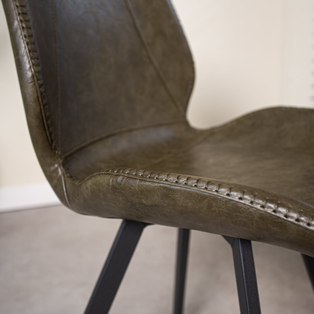 Beschrijving en specificaties van Industriële Eetkamerstoel Groen Barry Kunstleer - Zonder Armleuningen