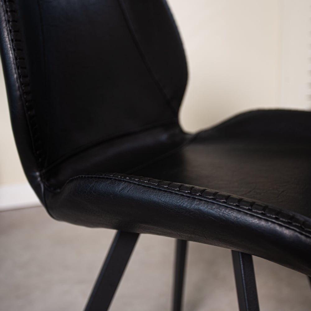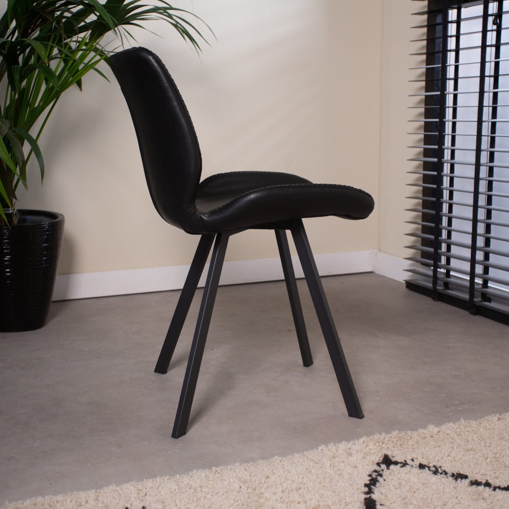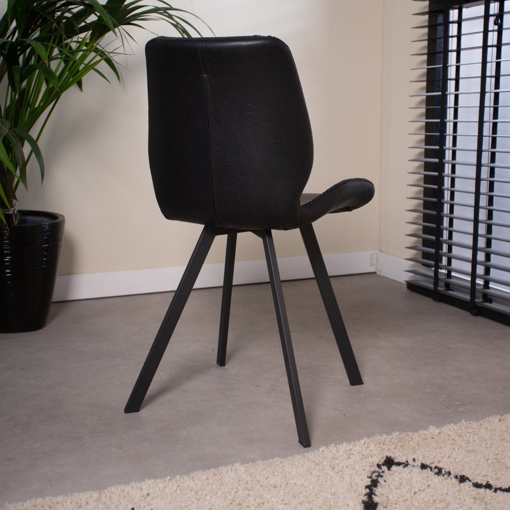 Industriële Eetkamerstoel Zwart Barry Kunstleer - Zonder Armleuningen