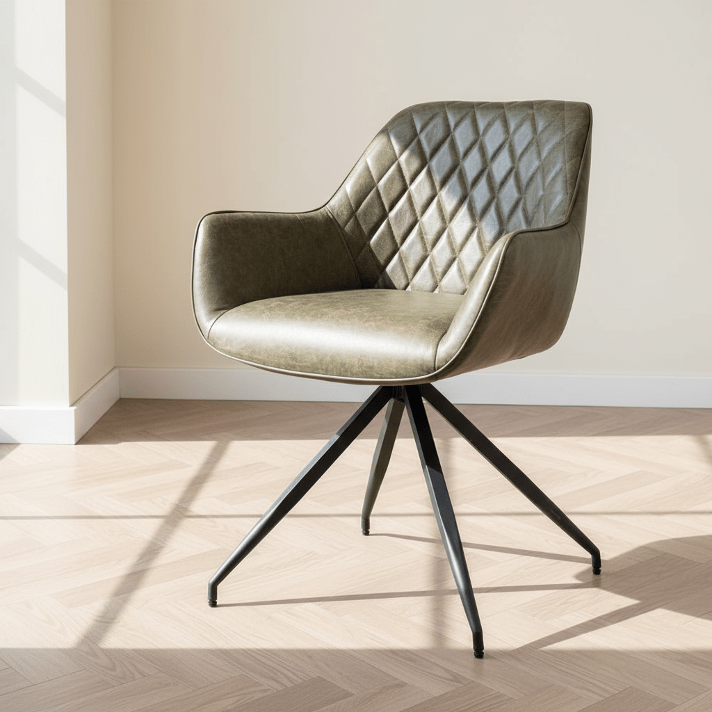 Beschrijving en specificaties van Industriële Eetkamerstoel Groen Gian - Kunstleer - Ruitpatroon - Met Armleuningen