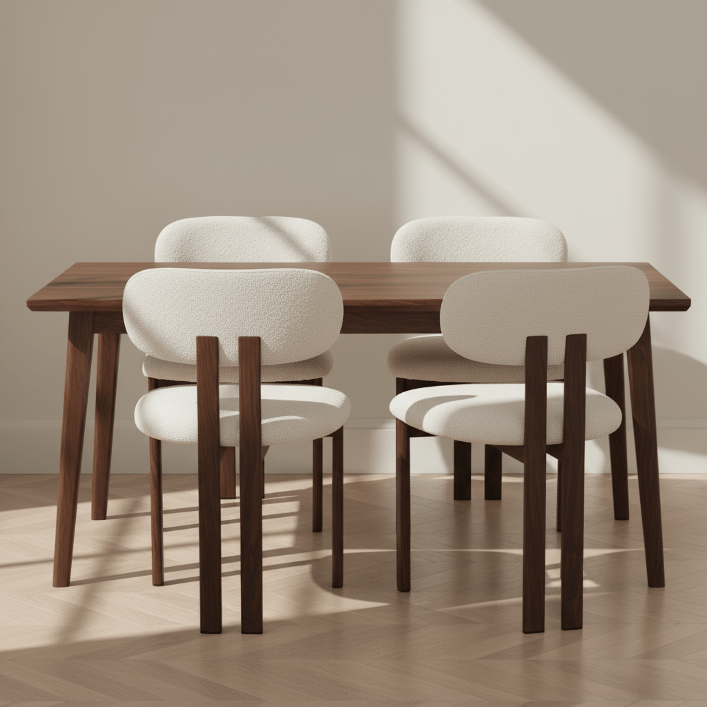 Japandi Eetkamerstoel Miyo Bouclé Beige - Walnootlook Frame