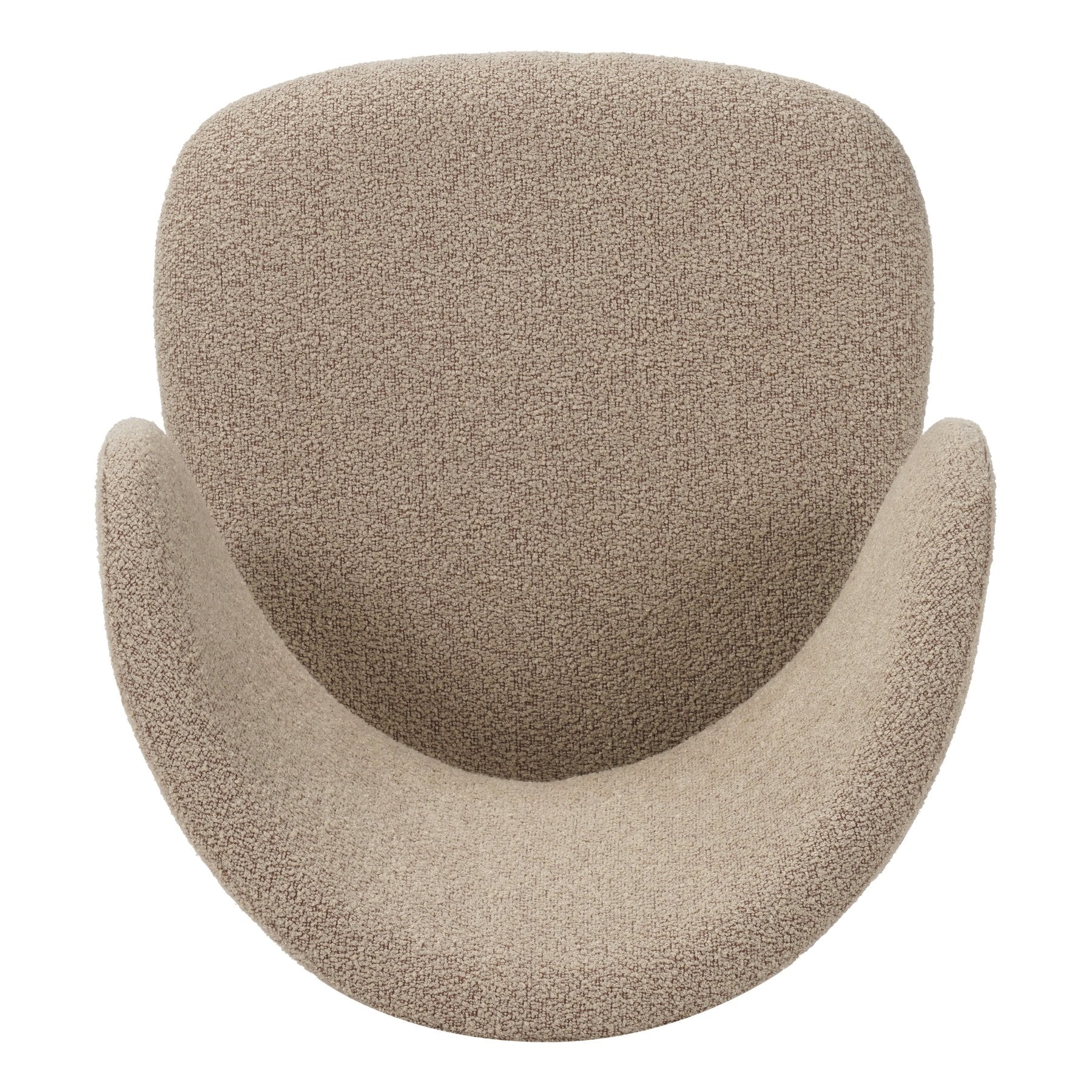De Yuka stoel biedt heerlijk zitcomfort dankzij de zachte bekleding en afgeronde rugleuning. De metalen poten met houtlook zijn stevig en onderhoudsvriendelijk. Let op: bouclé is een stof met een lusstructuur, waardoor voorzichtig gebruik aangeraden wordt bij huisdieren.