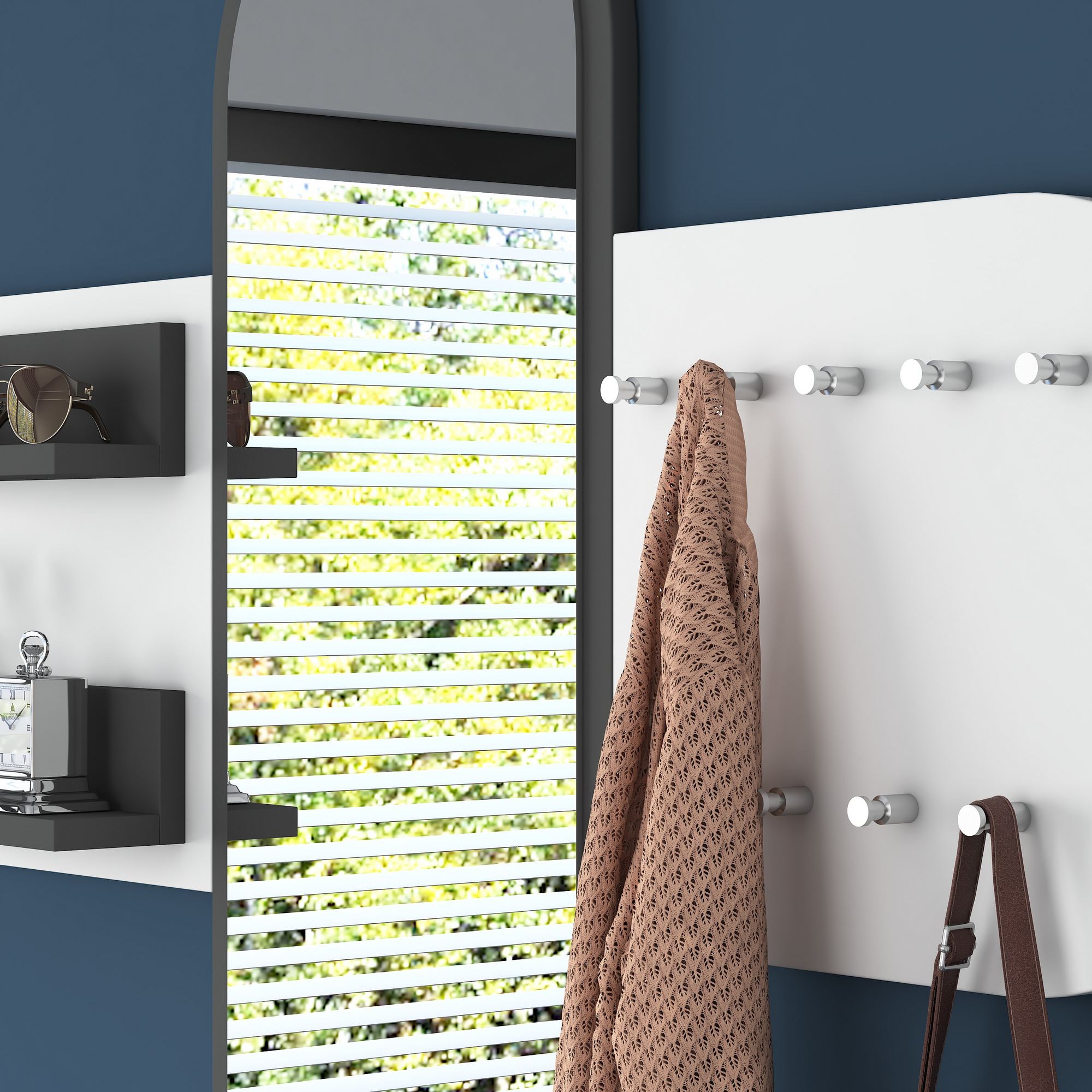 Beschrijving en specificaties van Kapstok Wit Melamine 9-Haaks - Met Spiegel - Twee Plankjes