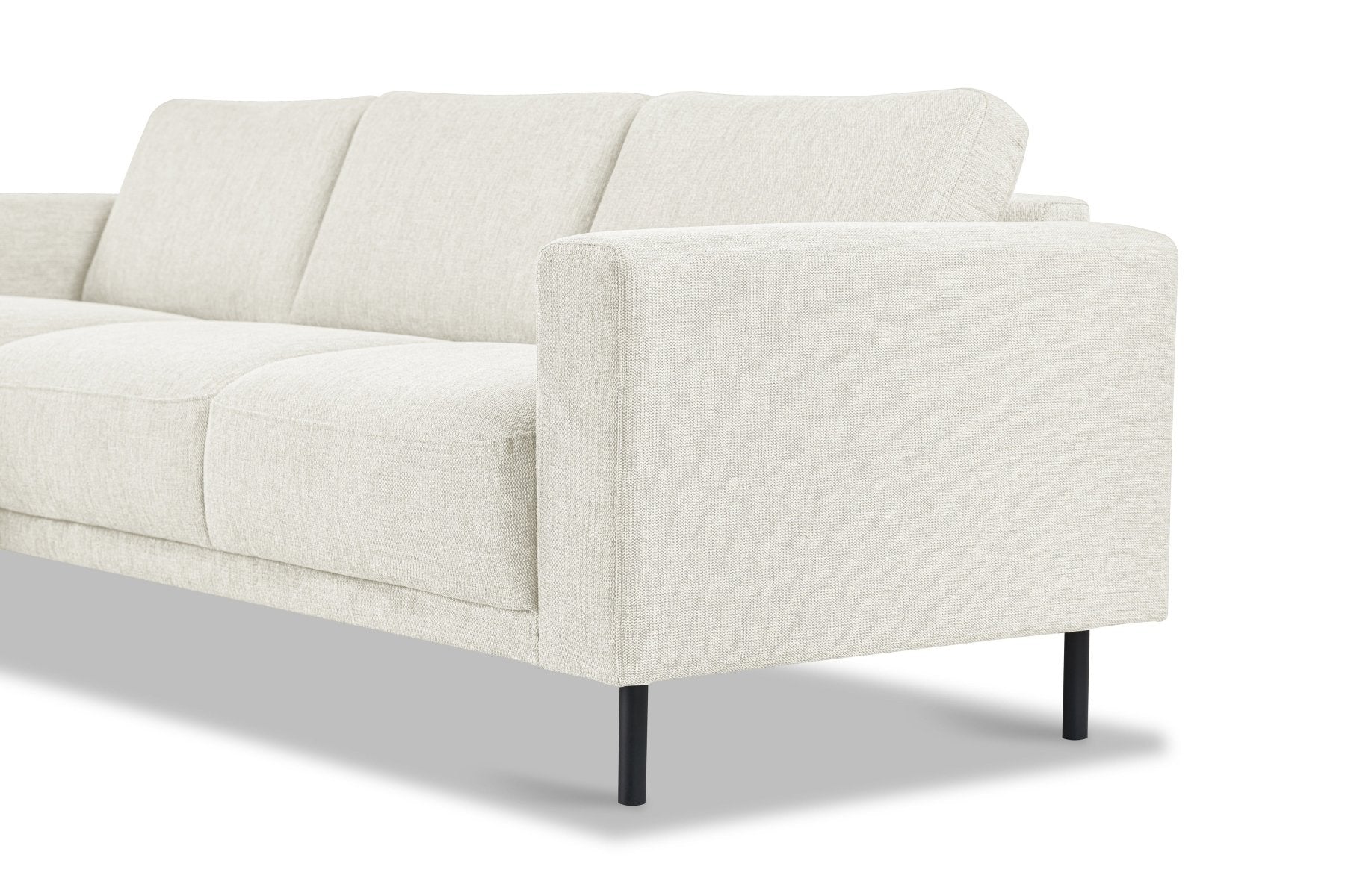 - Moderne afwerking: Slanke zwarte metalen poten (150 mm hoog) geven de bank een luchtige uitstraling en maken schoonmaken eenvoudig.