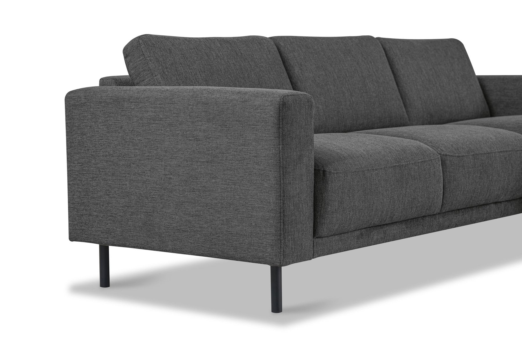- Moderne afwerking: Slanke zwarte metalen poten (150 mm hoog) geven de bank een luchtige uitstraling en maken schoonmaken eenvoudig.