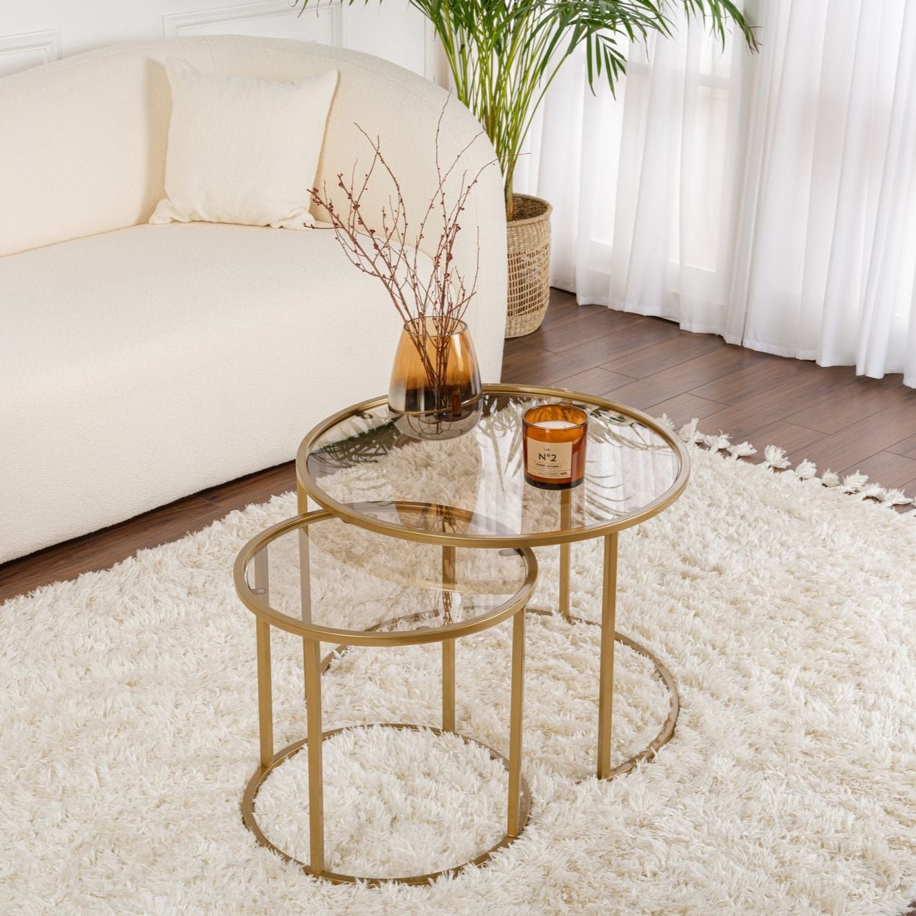 Beschrijving en specificaties van Moderne Ronde Salontafel Set van 2 Uru Goud - Brons Glas - 60/42 cm