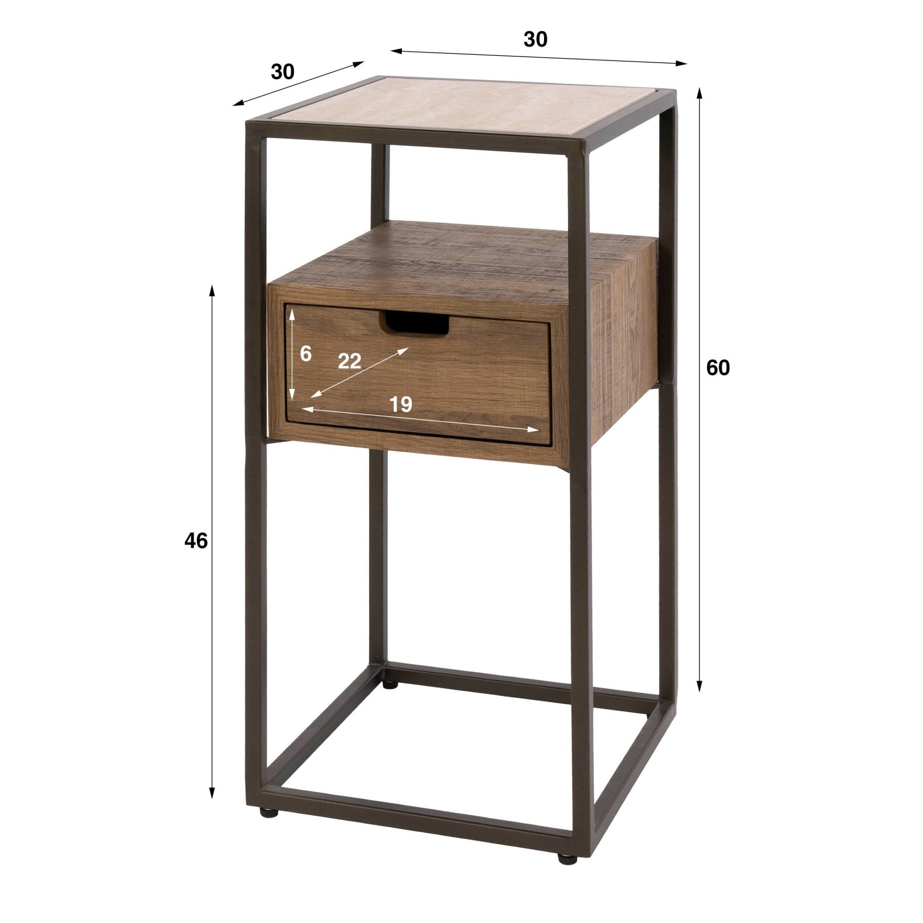 Beschrijving en specificaties van Nachtkastje met 1 lade keramiek travertin eikenhout Cady