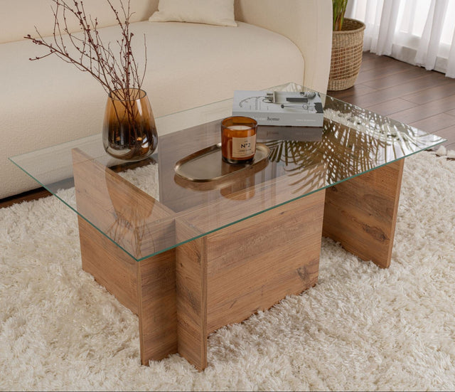 Rechthoekige Moderne Salontafel Vetroni Atlantisch Dennenhout Look - Glas - 105x65 cm
