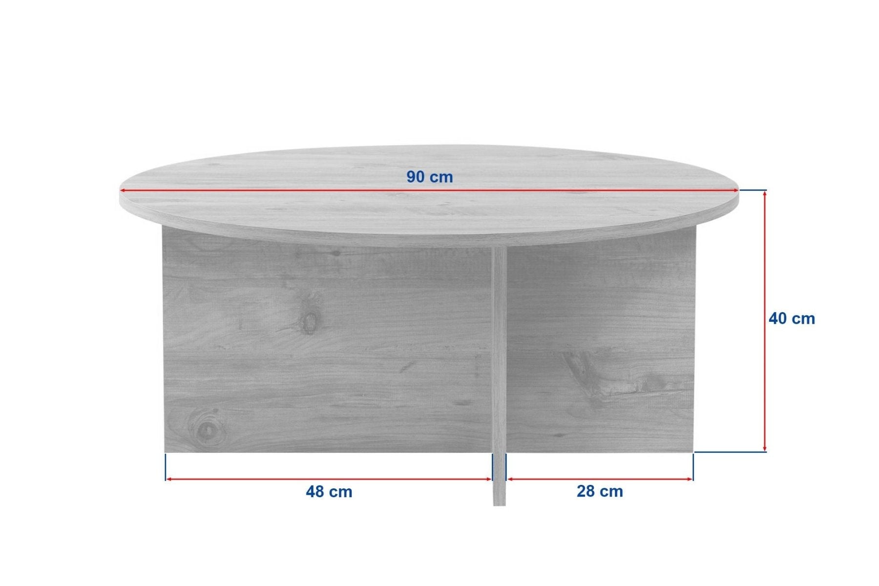 Beschrijving en specificaties van Ronde salontafel Dakota walnoot melamine 90x90x40 cm
