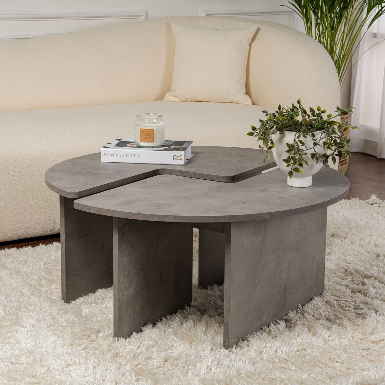 Met twee verschillende maten in deze set kun je ze op verschillende manieren rangschikken om aan je ruimte en behoeften te voldoen. Gebruik ze samen voor een samenhangende look of apart voor een veelzijdigere opstelling.