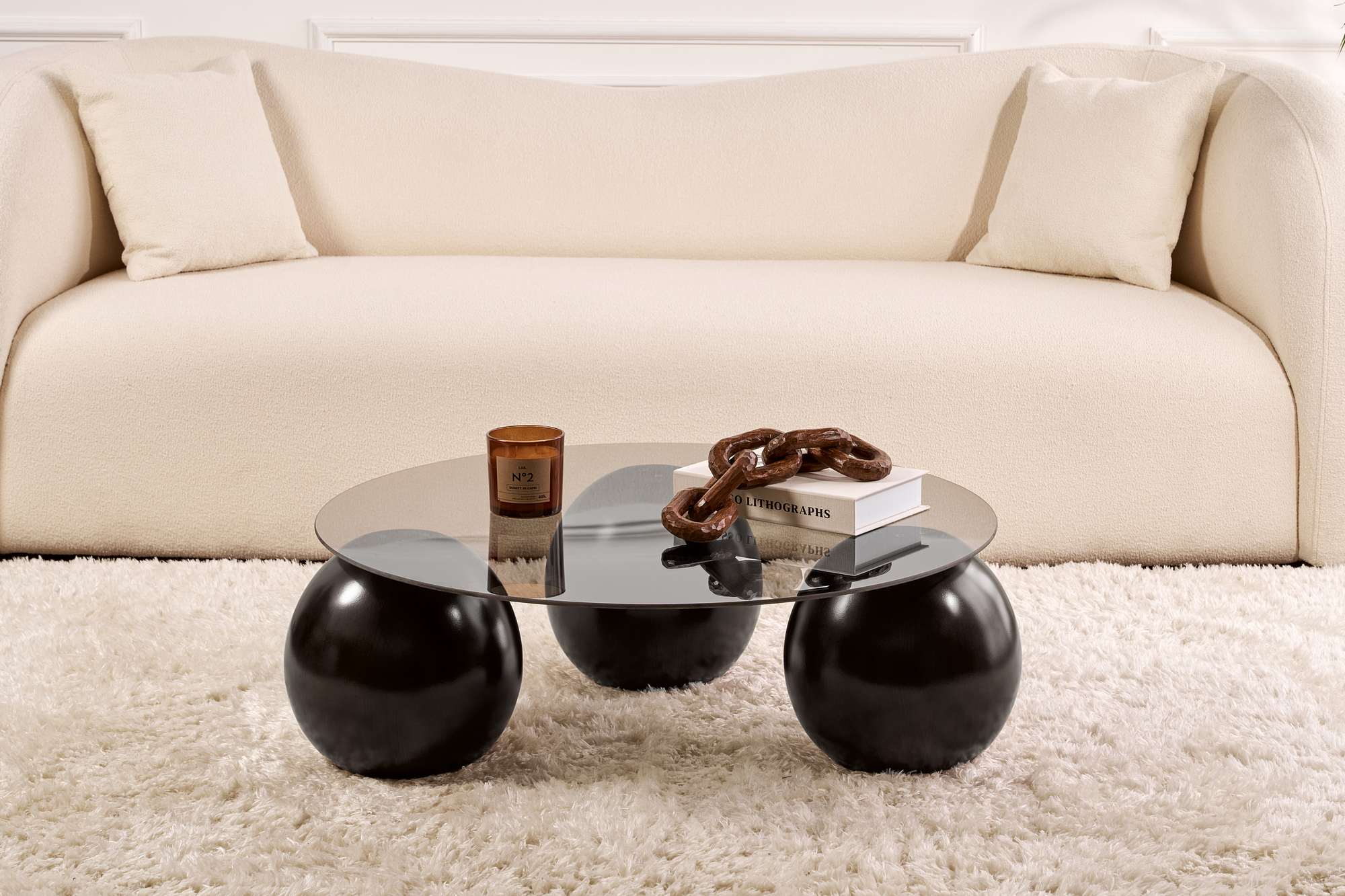 Salontafel Miro Gehard glas Zwart Grijs 85x85 cm Black Grey Tempered glass