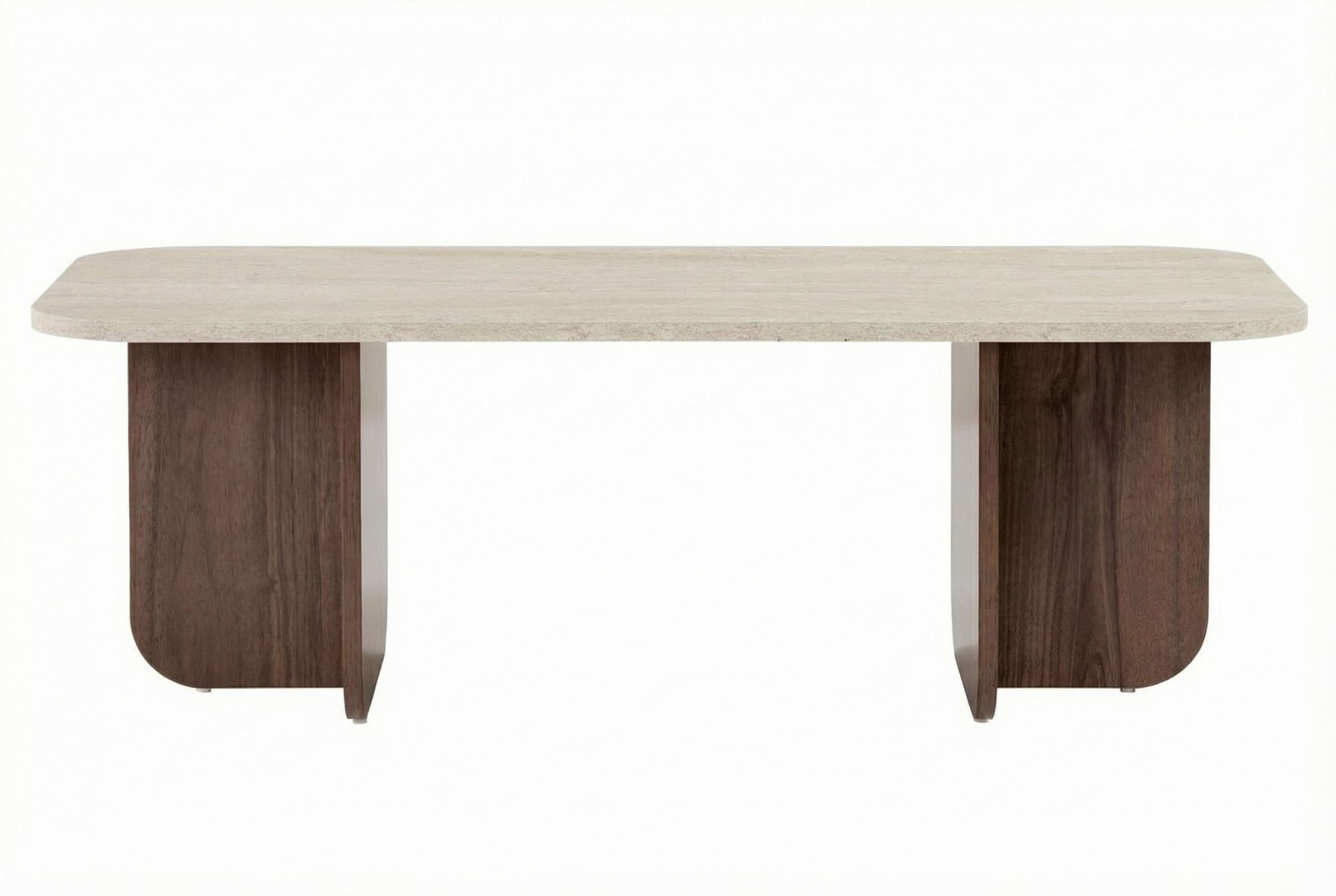 Salontafel walnoot melamine met travertin top - Japandi - 120x60 cm - Akira