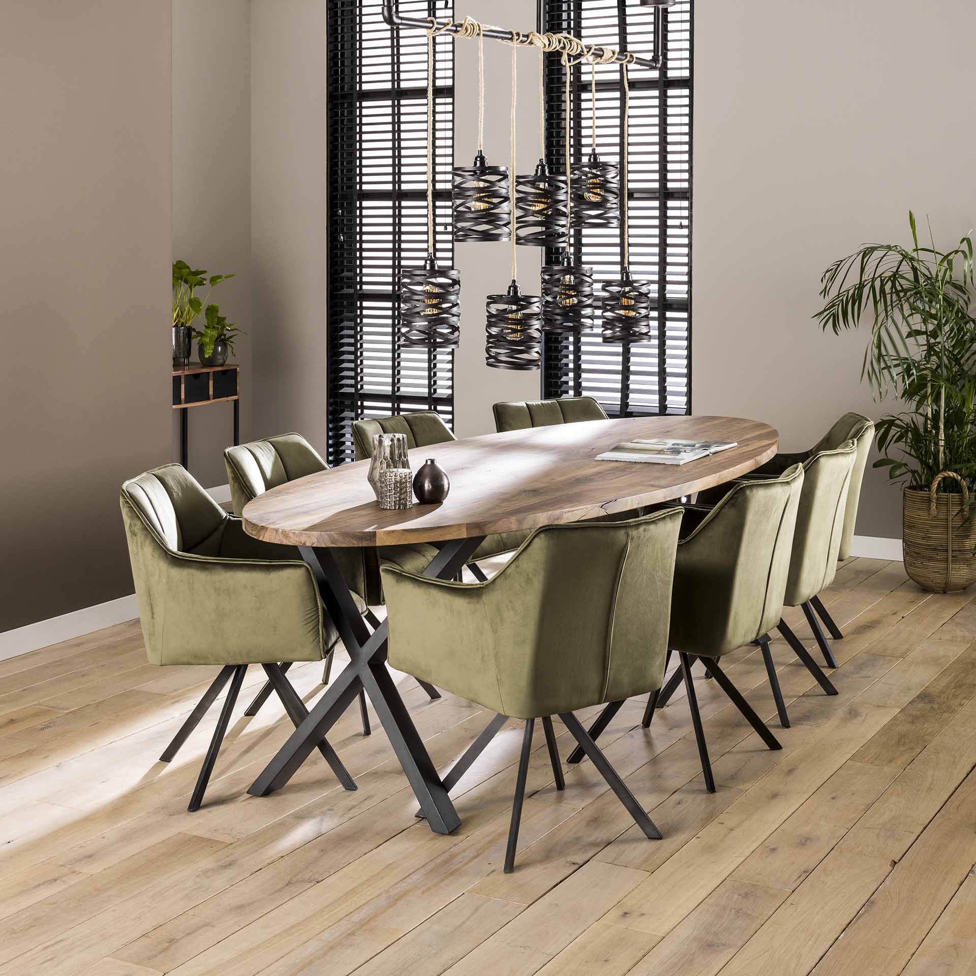 Beschrijving en specificaties van Set van 2 Eetkamerstoelen Lino Velvet Groen Draaibaar