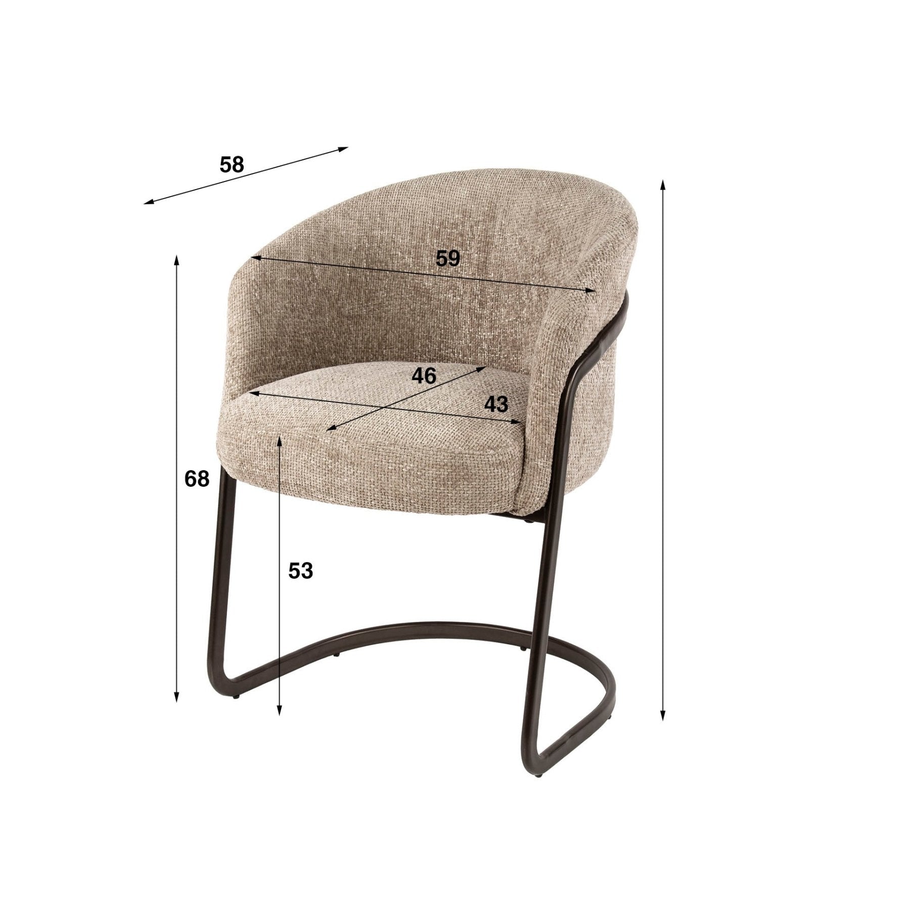 Deze set van twee Reno eetkamerstoelen combineert eigentijds design met praktisch comfort. De zachte Hoven rich zand bekleding zorgt voor een warme, neutrale uitstraling die goed past bij moderne en landelijke interieurs. De stoel heeft een compacte afmeting waardoor hij geschikt is voor kleinere eethoeken of als extra zitplaats in woonkamers.