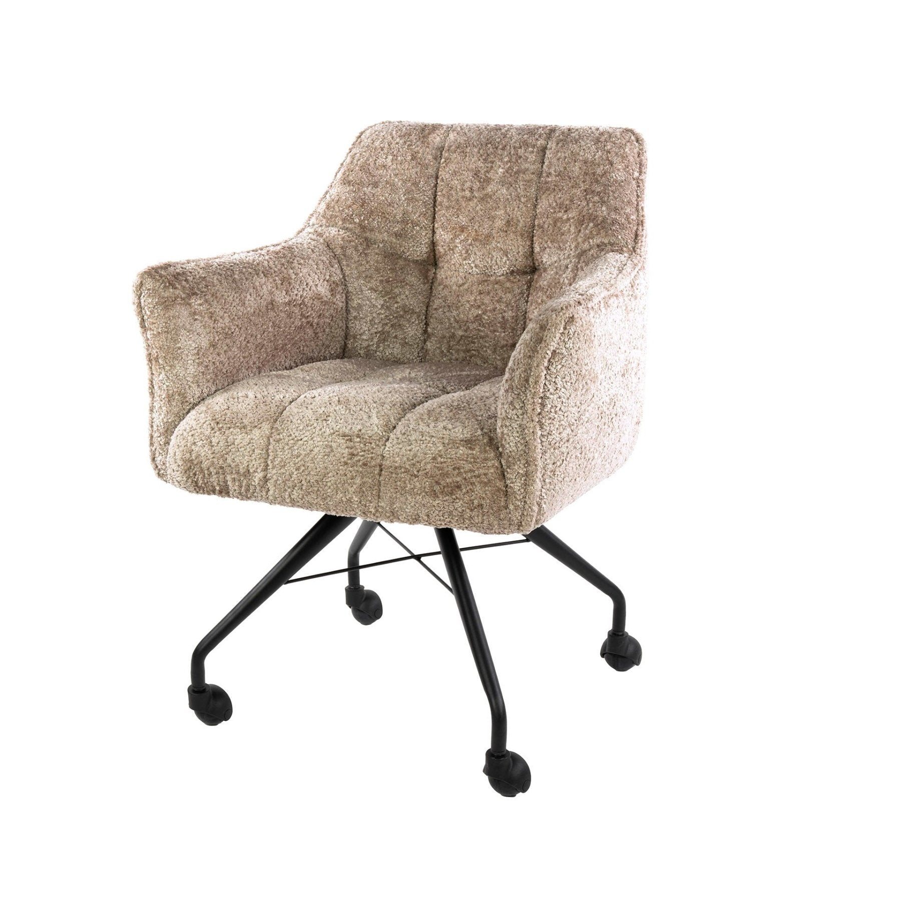 Beschrijving en specificaties van Set van 2 Eetkamerstoelen Tova Stof Alura Zand Met Wieltjes