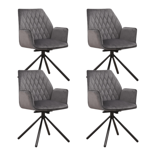 Set van 4 Draaibare Eetkamerstoelen Novan Antraciet Velvet – 180° Draaibaar