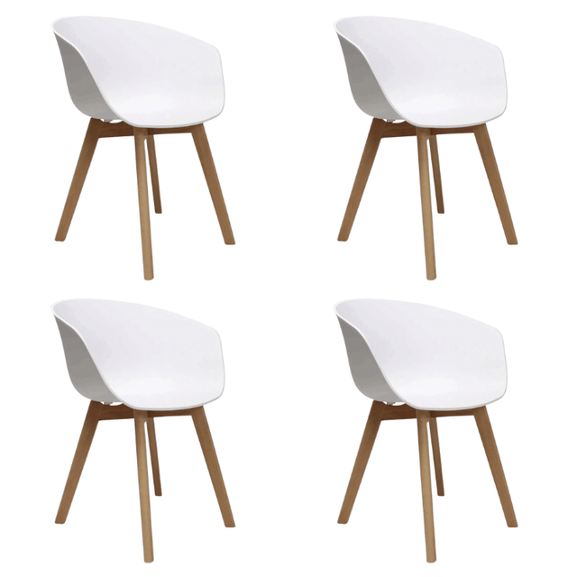 Set van 4 Eetkamerstoelen Herning Scandinavisch Wit – Kunststof en Beukenhout