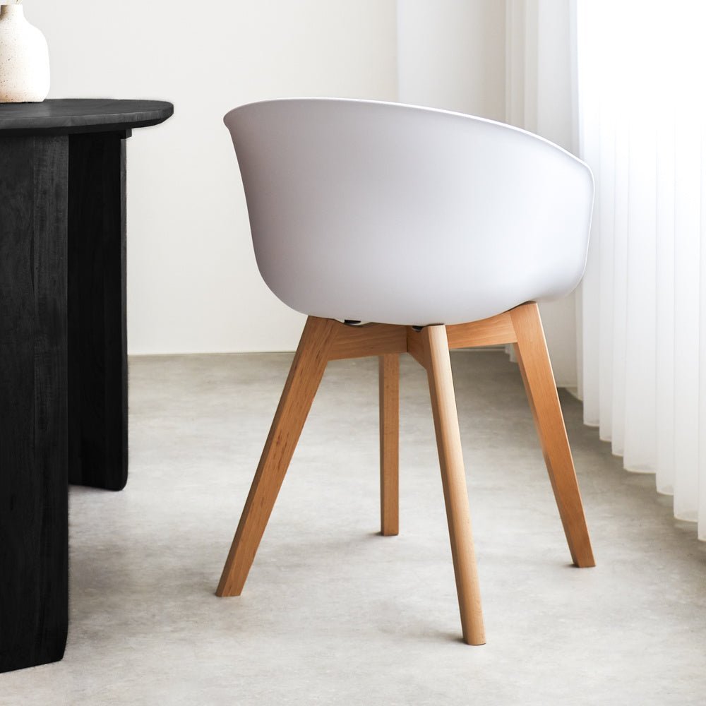 De Scandinavische eetkamerstoel Herning is een elegante en comfortabele kuipstoel met massief Beuken pootjes. De Herning geeft iedere ruime een frisse look.