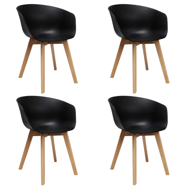 Set van 4 Eetkamerstoelen Herning Scandinavisch Zwart – Kunststof en Beukenhout