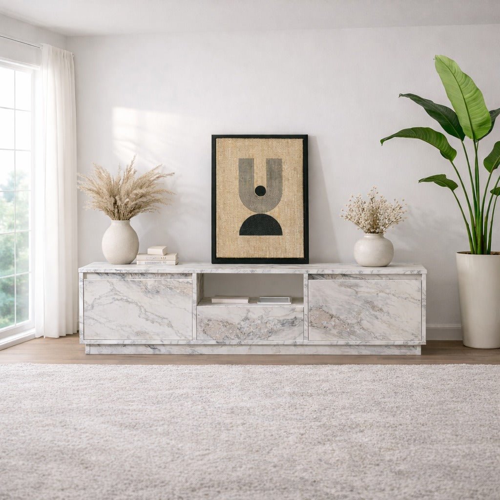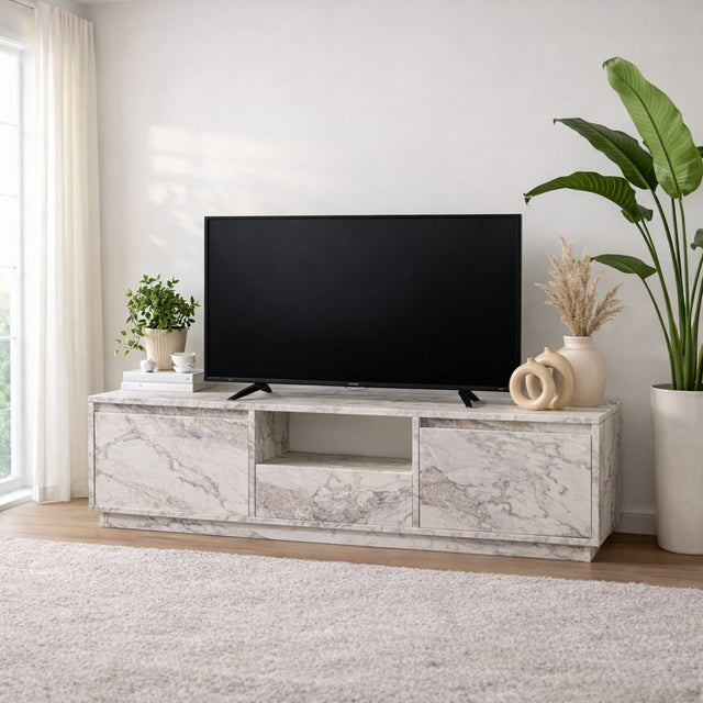 TV Meubel Marmer Melamine - drie kastjes - 160x42x29,5 cm - Flare