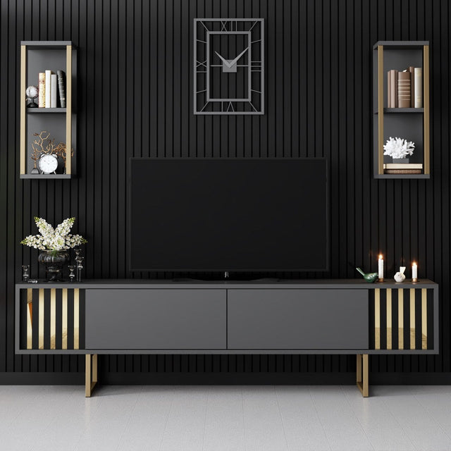 Beschrijving en specificaties van TV Meubel Set Gold Line Antraciet Zwart Melamine 180x48x30 cm