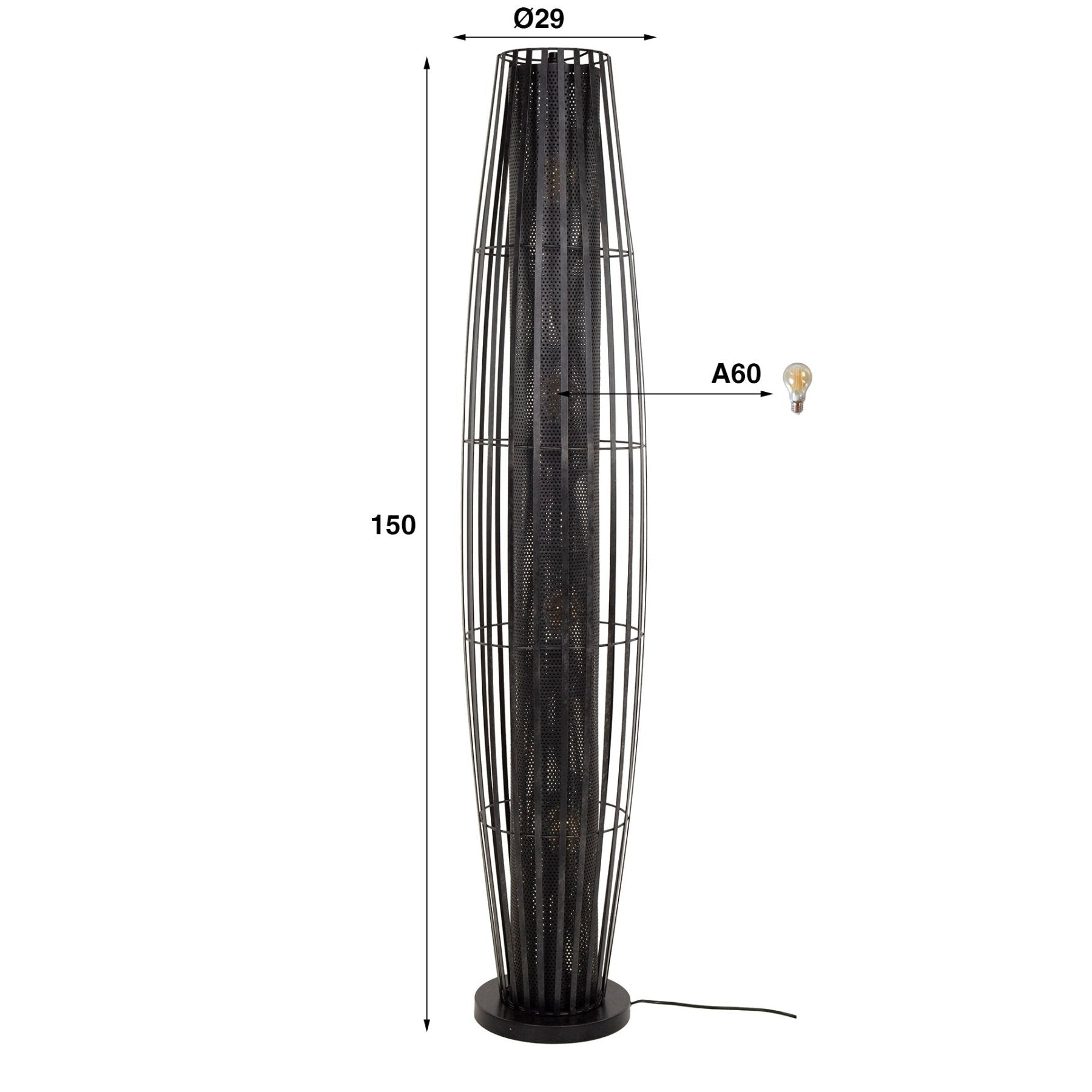 Beschrijving en specificaties van Vloerlamp Liora 4-lichts cylinder mesh zwart 150 cm