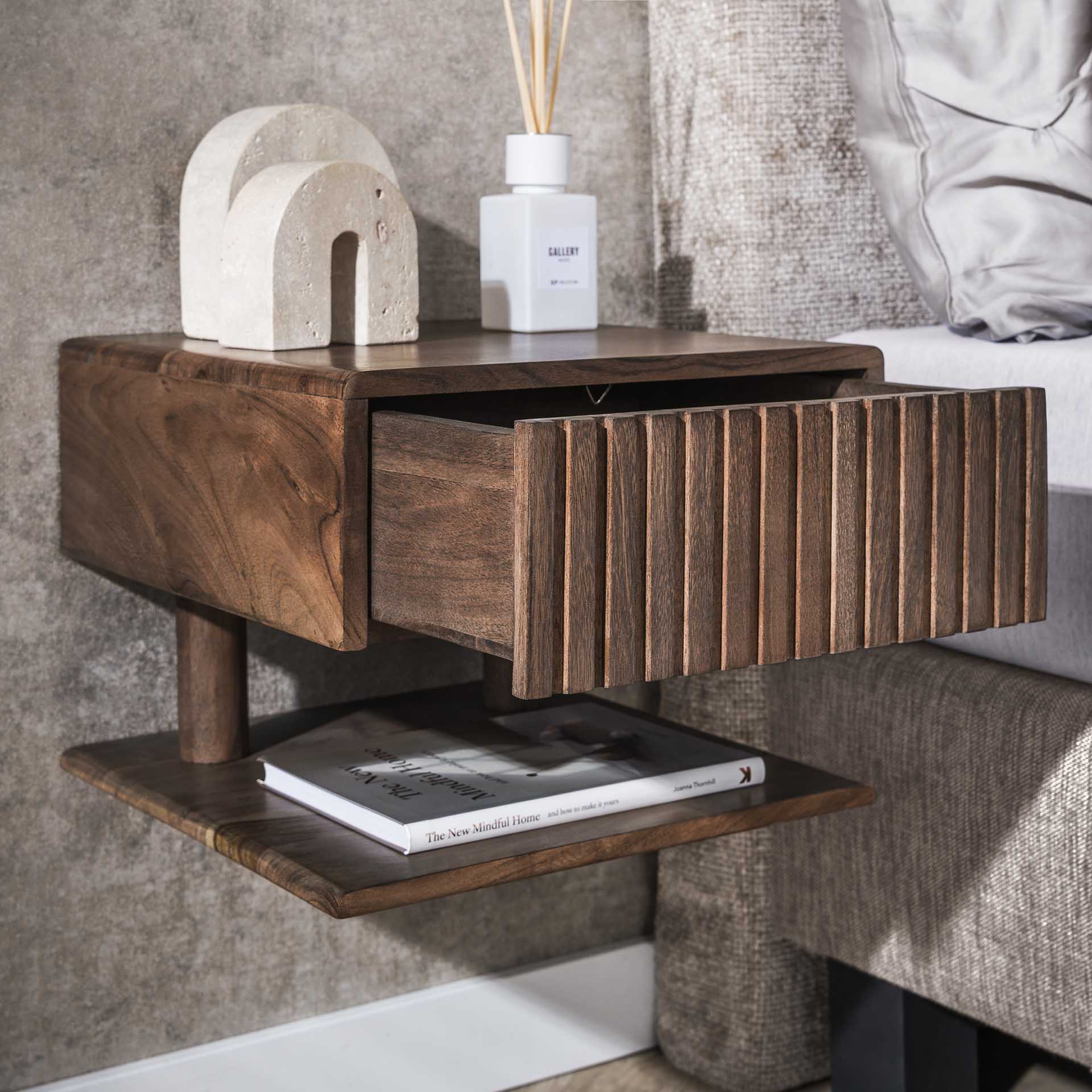 Zwevend Nachtkastje Dex Acaciahout Drift Brown 1 Lade Open Plank